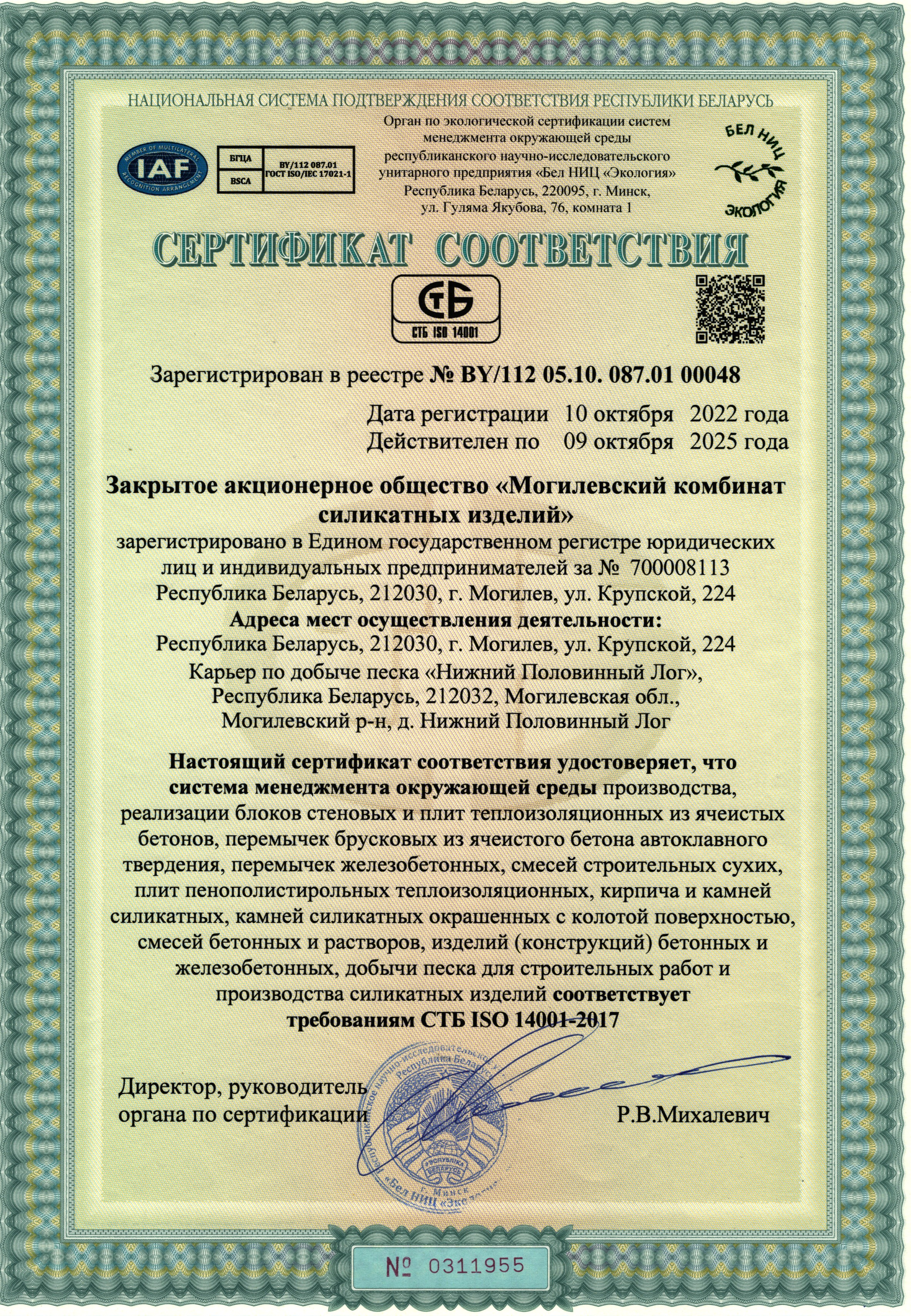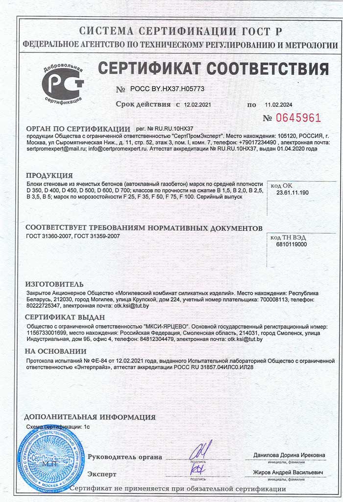 Газобетон Могилевский КСИ D400 400x250x625 мм